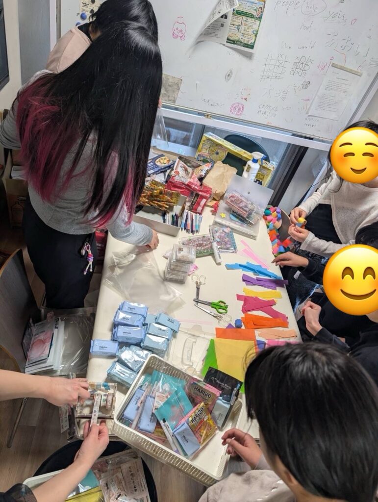 さくら広場さんに来ている女の子たちがアウトリーチの準備のお手伝いをしてくれました